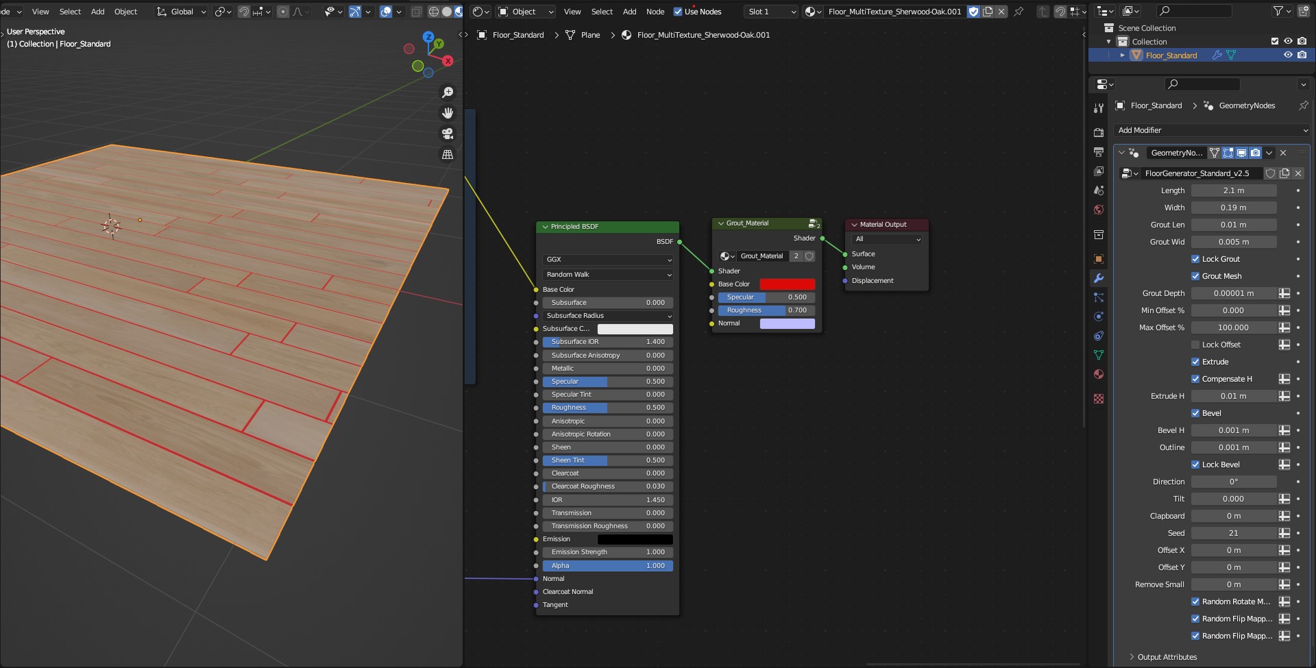 Add *Grout\_Material* Node (this is a group of nodes which comes together with Floor Generator).